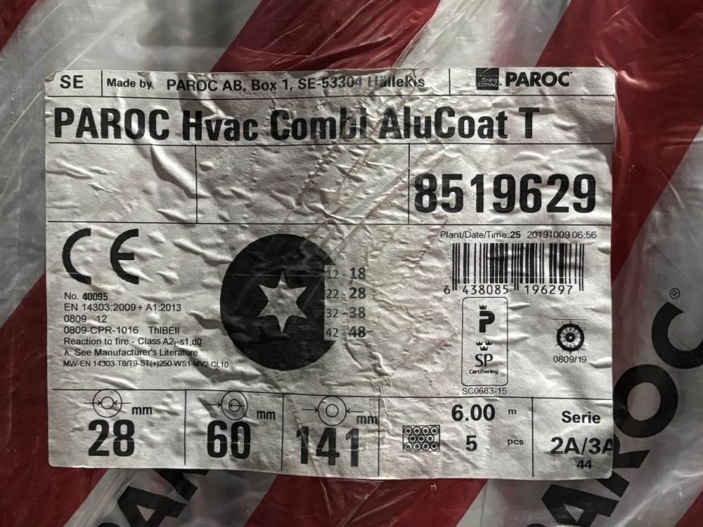 38596 - Rörisolering, AluCoat, PAROC, 28/141mm, 25st