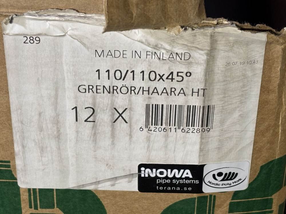 38604 - Grenrör, 110/110 x 45°, INOWA, 23st