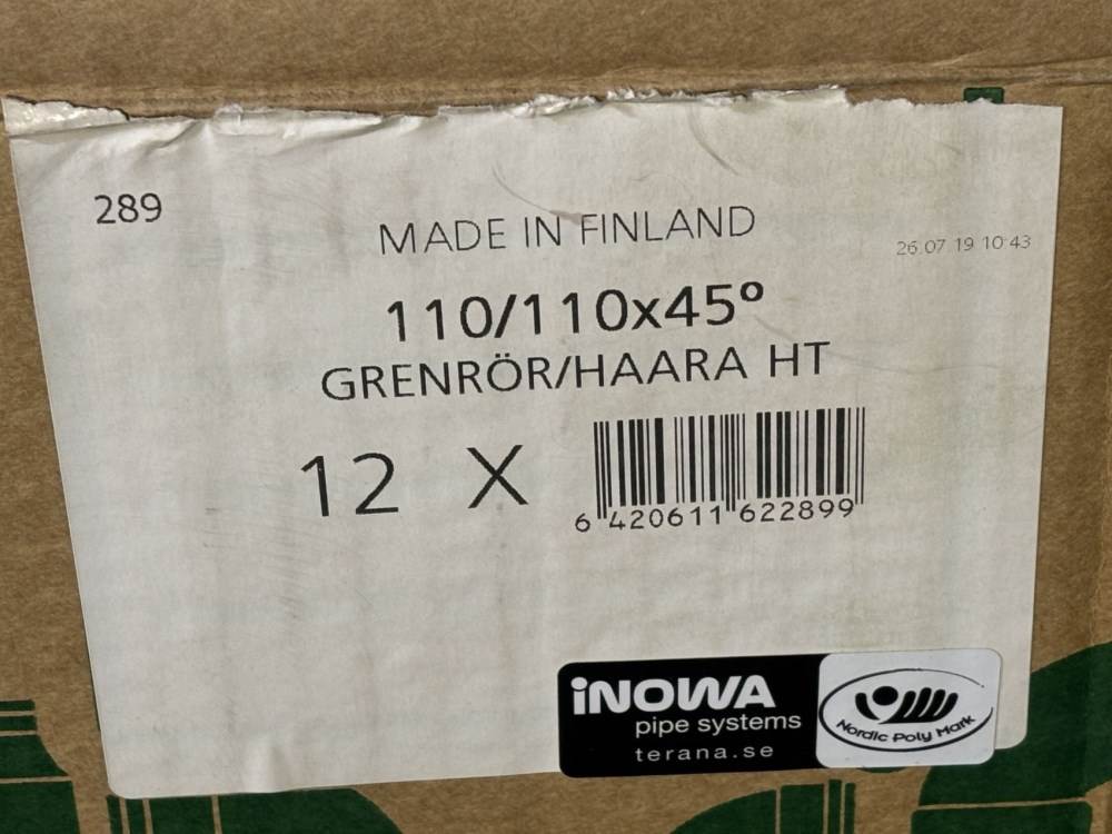 38605 - Grenrör, 110/110 x 45°, INOWA, 12st