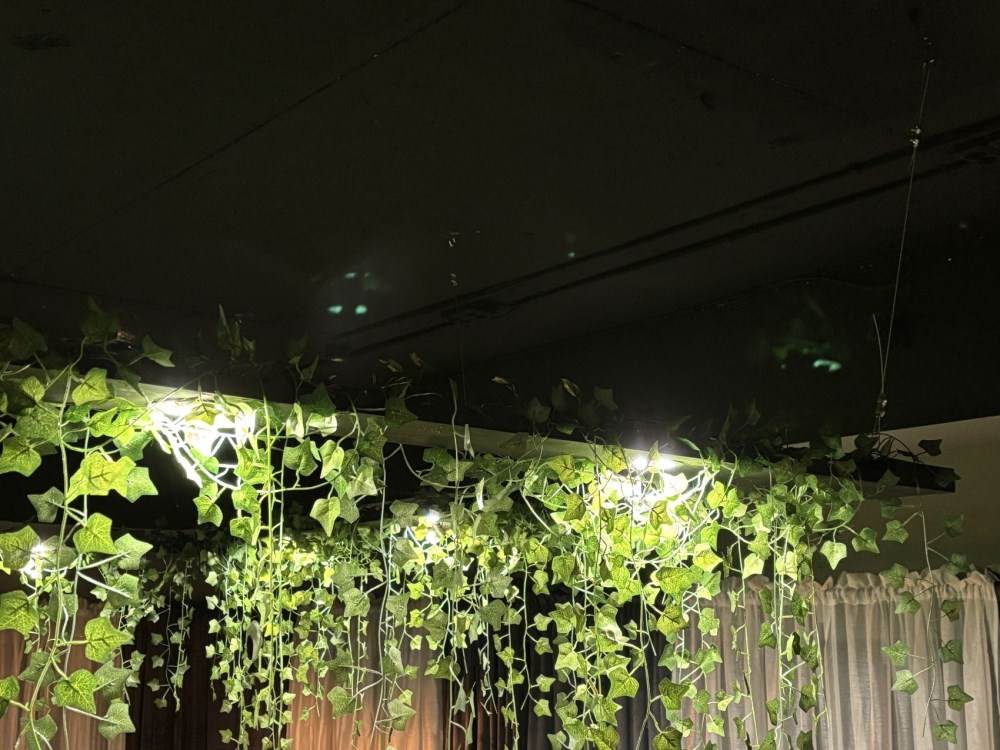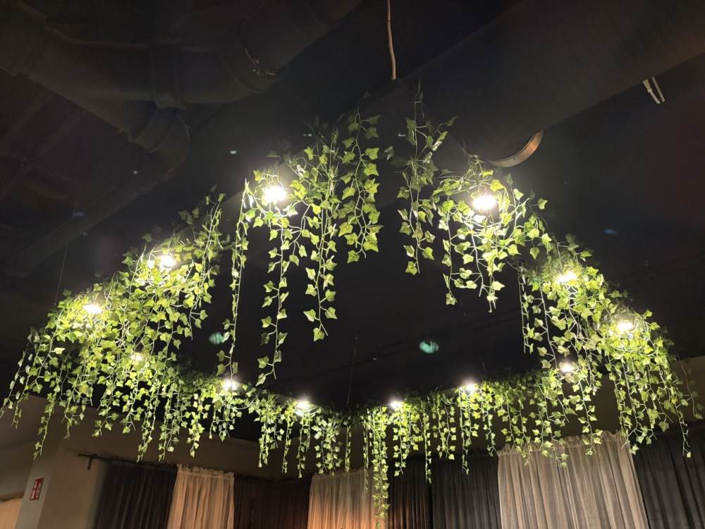 Hängande takbelysning med 12 LED-downlights och murgröna