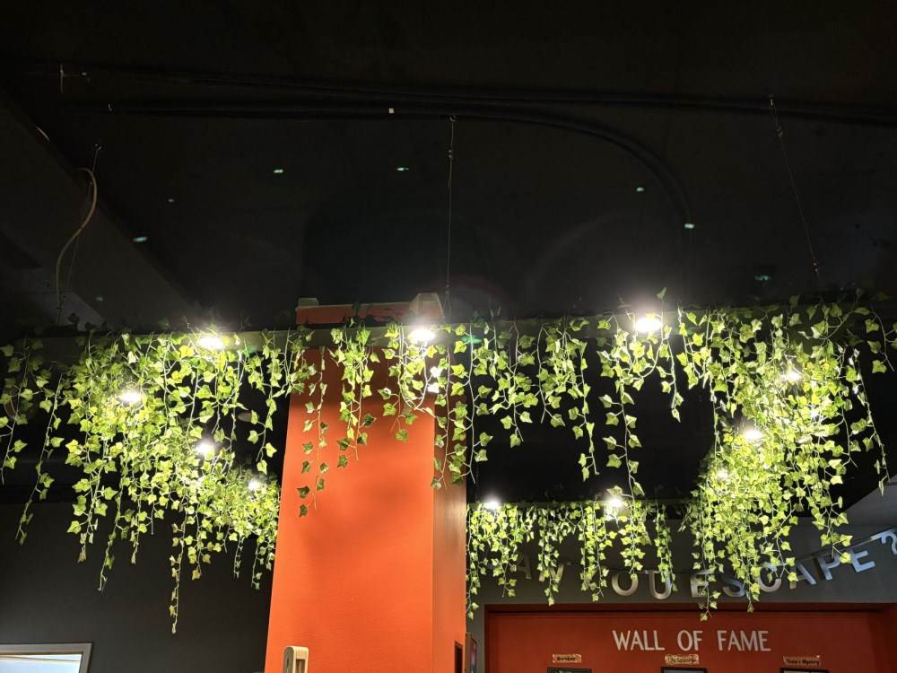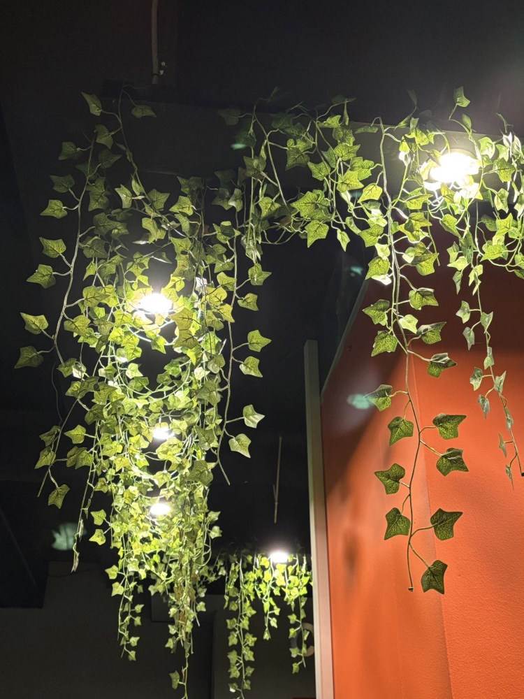 Hängande takbelysning med 12 LED-downlights och murgröna