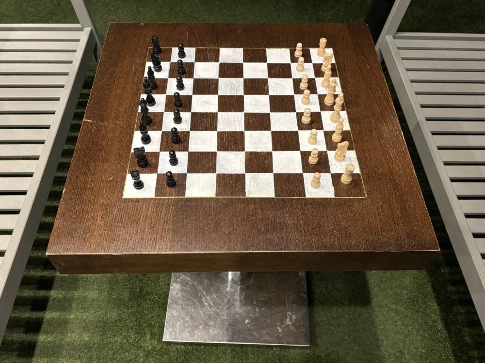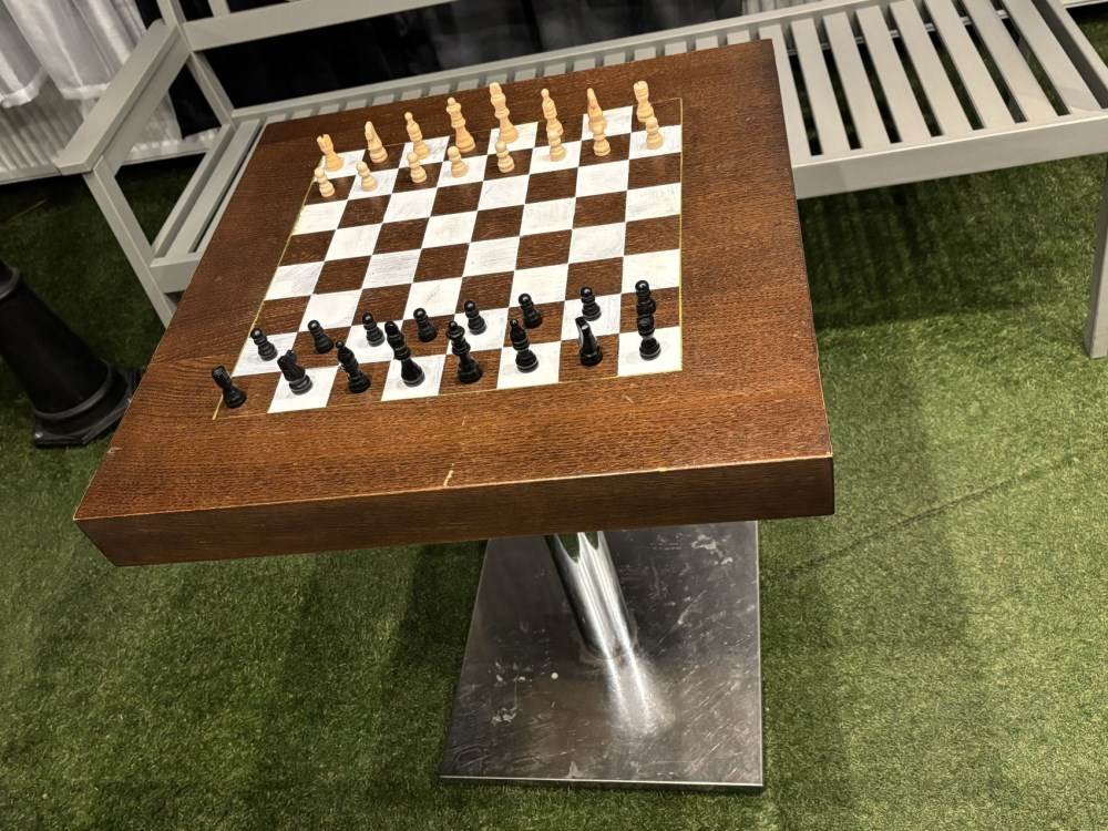 Bord med schackbräde och pjäser