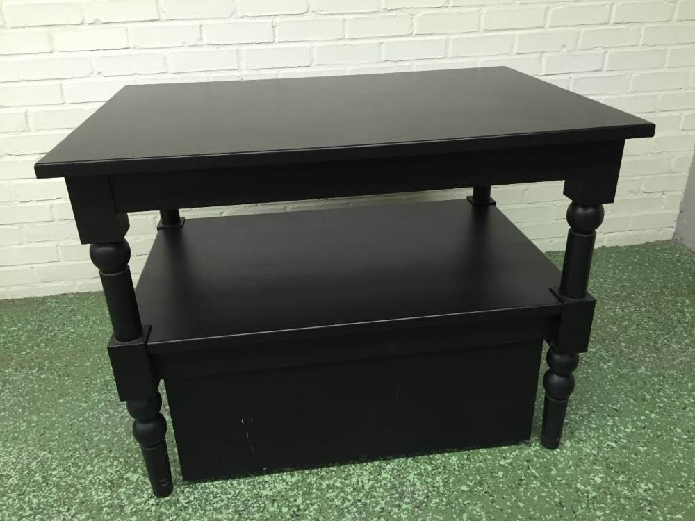 Svart presentationsbord med låda för förvaring Bord:83 x 120 cm, höjd: 90cm Lådan: 69 x 93cm, höjd: 36cm ----------------------------------------------------------------------------------------------------------------- OBS! LÄS TEXTEN HÄR NEDAN! OBS! LÄS TEXTEN HÄR NEDAN! OBS! ----------------------------------------------------------------------------------------------------------------- VISNING: torsdag den 27:e augusti kl. 11 - 17 Industrig. 7, Gävle (Brynäs) AUKTION: söndag den 30:e augusti med avslut från kl. 11 på vår hemsida. AVHÄMTNING: måndag den 7:e september kl. 11 - 17 Industrig. 7, Gävle (Brynäs) ----------------------------------------------------------------------------------------------------------------- Detta objekt säljs av företag och budet är INKLUSIVE moms! Slagavgift (inkl. moms) tillkommer på samtliga rop och storleken på slagavgiften visas tydligt när du lägger bud. Tabell över slagavgiftens storlek finner du även under ”Användarguide” i menyn. Objekten säljs i befintligt skick. Auktionsgruppen tar EJ ansvar för eventuella felskrivningar och oupptäckta fel. Ingen ångerrätt eller möjlighet till reklamation gäller. Det är därför viktigt att ni kommer på visningen för att själv göra er bedömning av objektet innan budgivning om ni är osäker. ALLA BUD ÄR BINDANDE. ----------------------------------------------------------------------------------------------------------------- Vid avhämtning: Fakturan MÅSTE vara betald innan objekten kan lämnas ut. Medtag kvitto/bevis på betalning vid utlämning (utskrift eller uppvisande av betalning via telefon är OK). Medtag egna verktyg och dylikt för nermontering av objekt samt ev. emballage. Auktionsgruppen har begränsad möjlighet att bistå med nedmontering och bärhjälp. Ta med detta i er planering. ----------------------------------------------------------------------------------------------------------------- Har du frågor är du välkommen att kontakta oss: Telefon: 026-123 045 E-post: info@auktionsgruppen.se