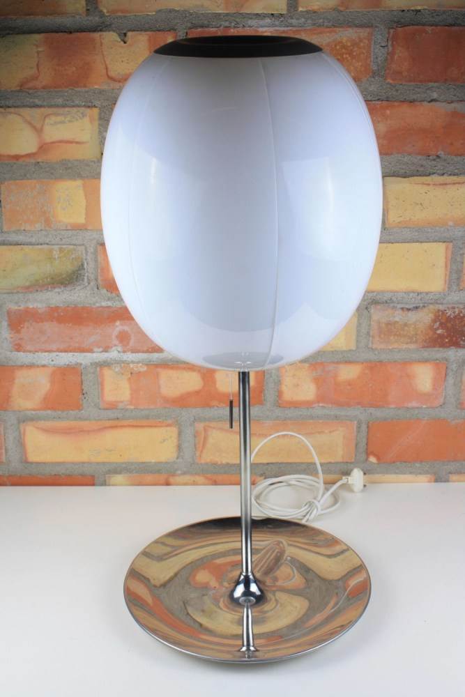 Bordslampa med kromad fot och plastkåpa. höjd: 65cm, diameter: 30 cm. ----------------------------------------------------------------------------------------------------------------- OBS! LÄS TEXTEN HÄR NEDAN! OBS! LÄS TEXTEN HÄR NEDAN! OBS! ----------------------------------------------------------------------------------------------------------------- VISNING: torsdag den 17:e september kl. 11 - 17 Industrig. 7, Gävle (Brynäs) AUKTION: söndag den 20:e september med avslut från kl. 11 på vår hemsida. AVHÄMTNING: måndag den 28:e september kl. 11 - 17 Industrig. 7, Gävle (Brynäs) ----------------------------------------------------------------------------------------------------------------- Detta objekt säljs av företag och budet är INKLUSIVE moms! Slagavgift (inkl. moms) tillkommer på samtliga rop och storleken på slagavgiften visas tydligt när du lägger bud. Tabell över slagavgiftens storlek finner du även under ”Användarguide” i menyn. Objekten säljs i befintligt skick. Auktionsgruppen tar EJ ansvar för eventuella felskrivningar och oupptäckta fel. Ingen ångerrätt eller möjlighet till reklamation gäller. Det är därför viktigt att ni kommer på visningen för att själv göra er bedömning av objektet innan budgivning om ni är osäker. ALLA BUD ÄR BINDANDE. ----------------------------------------------------------------------------------------------------------------- Vid avhämtning: Fakturan MÅSTE vara betald innan objekten kan lämnas ut. Medtag kvitto/bevis på betalning vid utlämning (utskrift eller uppvisande av betalning via telefon är OK). Medtag egna verktyg och dylikt för nermontering av objekt samt ev. emballage. Auktionsgruppen har begränsad möjlighet att bistå med nedmontering och bärhjälp. Ta med detta i er planering. ----------------------------------------------------------------------------------------------------------------- Har du frågor är du välkommen att kontakta oss: Telefon: 026-123 045 E-post: info@auktionsgruppen.se