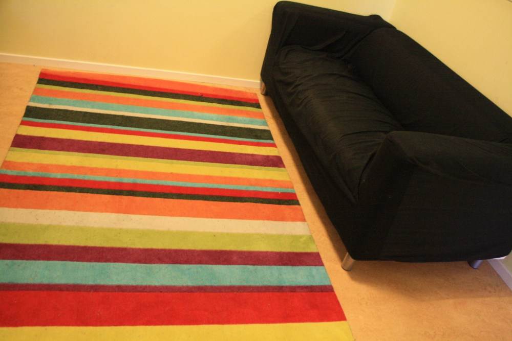 "Klippan" soffa + matta (140x200cm, fläckar finns.)