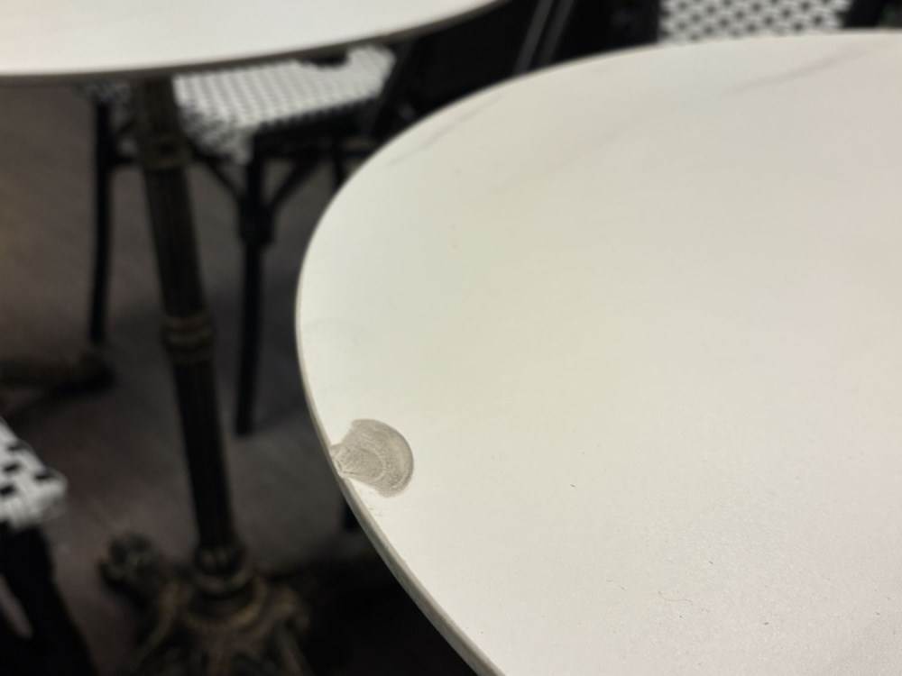 (Det finns "nagg" på några av bordsskivorna)