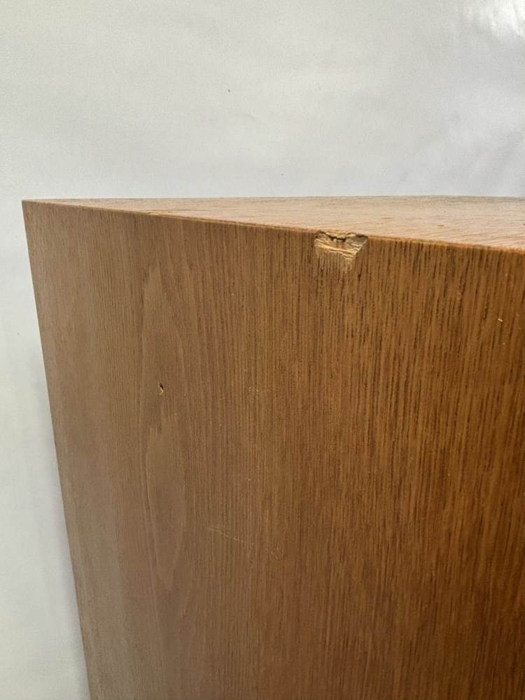 I ekfaner och lådor med metallhandtag