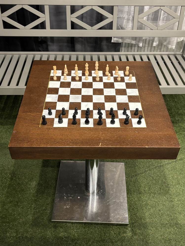 Bord med schackbräde och pjäser