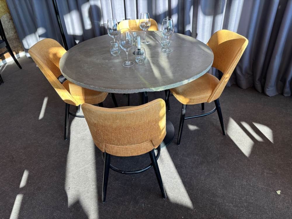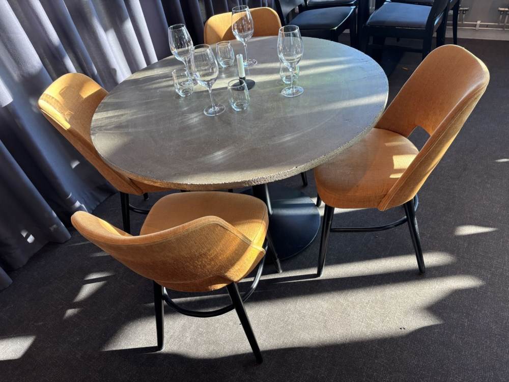 Bord med betongskiva och 4 stolar