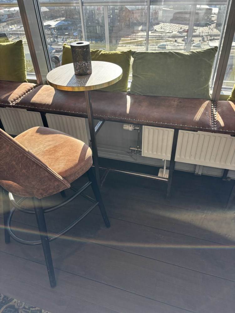 Bänk med minibord och barstol